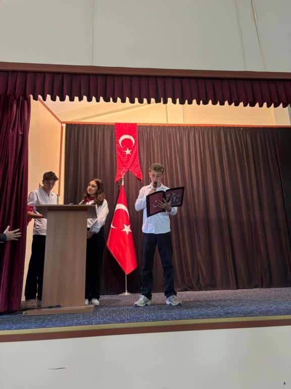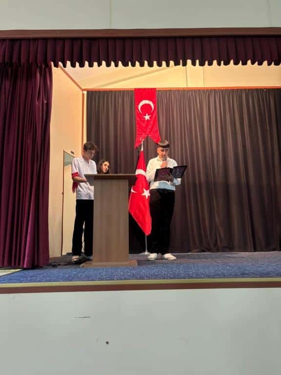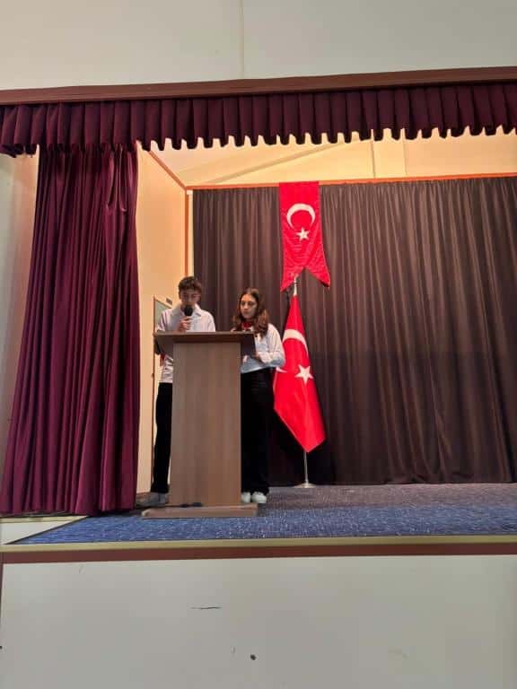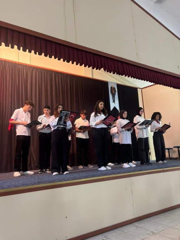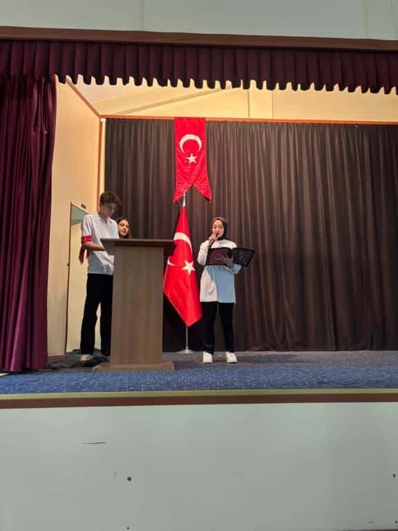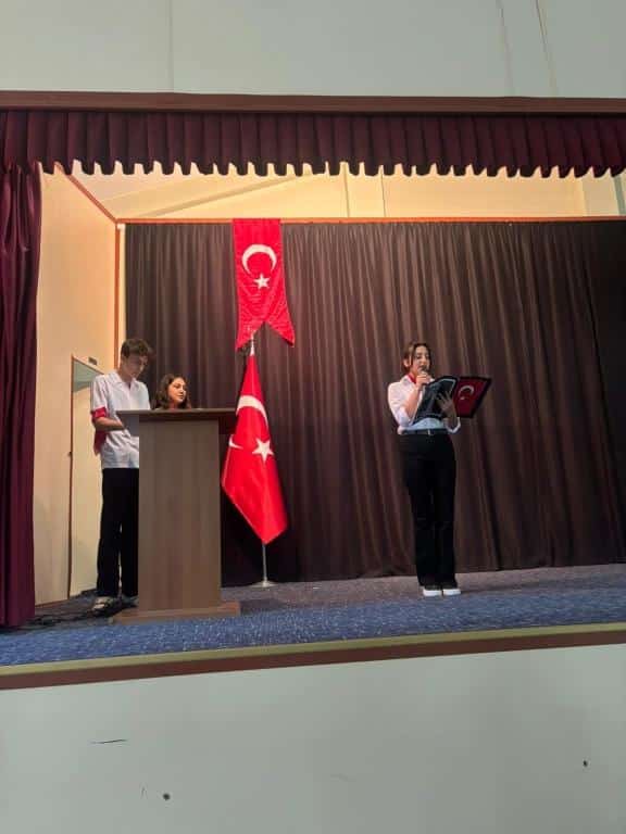 Tören, saygı duruşu ve İstiklâl Marşı’nın okunmasıyla başladı. Ardından, öğrencilerimiz Atatürk’ün “Türk milletinin karakterine ve adetlerine en uygun idare, cumhuriyet idaresidir.” sözünü hatırlatarak hazırladıkları şiirler, konuşmalar ve gösterilerle büyük beğeni topladılar.