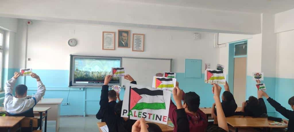 Türkiye Yüzyılı Maarif Modeli temel hak ve hürriyetler perspektifinde koşulsuz insan haklarına saygı, küresel barış ve dünyaya saygı ilkelerinden hareketle okulumuz öğrencileri ve öğretmenleri ile birlikte “Filistin Farkındalık Etkinlikleri” kapsamında insan hakları ve demokratik duyarlılığın ortak sorumluluk bilincini en üst düzeyde pekiştirmek amacıyla çeşitli etkinlikler düzenledik.