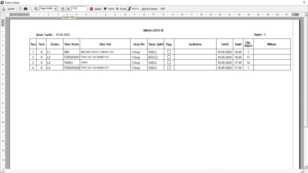 son sınıf öğrencilerinin sınavı 22 – 28 Eylül 2025 tarihinde yapılması planlanmaktadır.